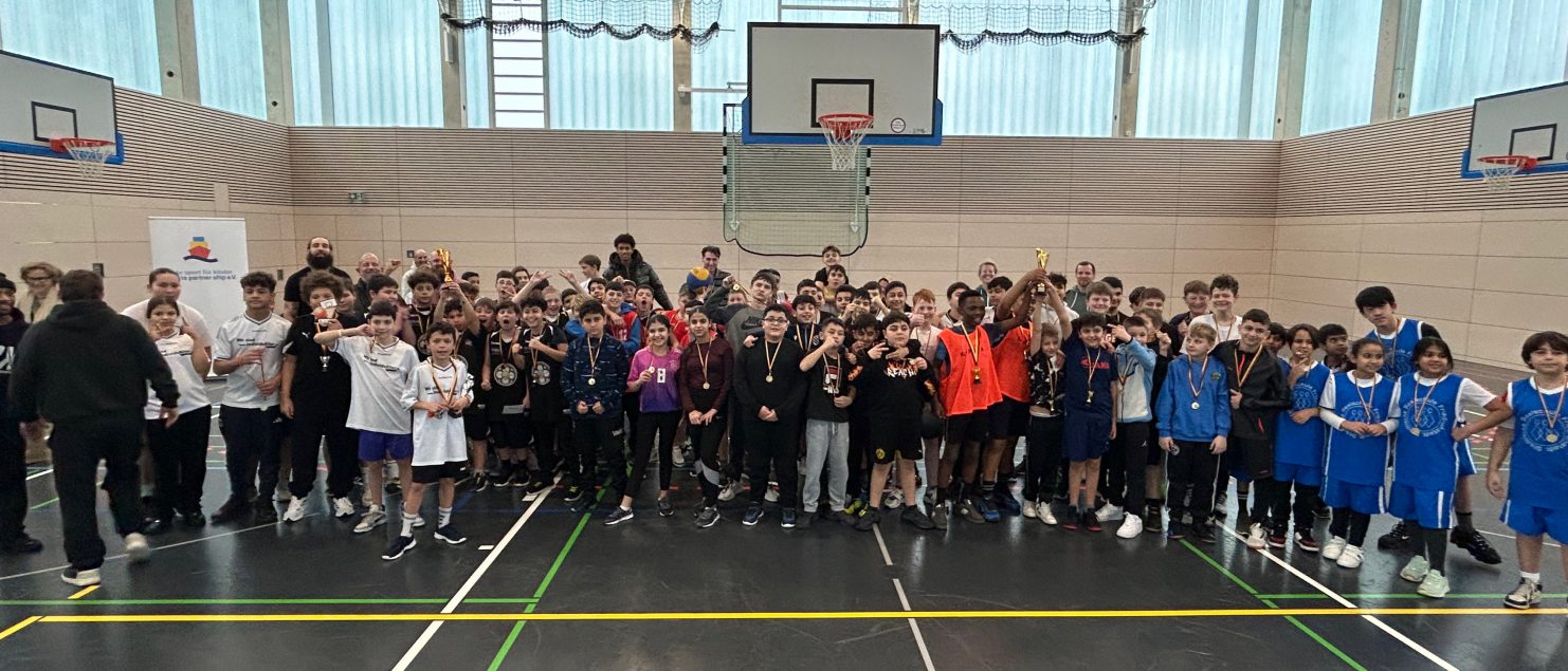 Am 5. Februar hatten die Schülerinnen und Schüler der 5. und 6. Klassen, die an der Basketball-AG an unserer Schule teilnehmen, die Möglichkeit, in einem Turnier gegen insgesamt 22 weitere Teams von anderen Düsseldorfer Schulen anzutreten. Das Turnier wurde von sports partner ship e.V. und der 3×3 Academy Düsseldorf e.V. organisiert und fand an der Gesamtschule Stettiner Straße statt.