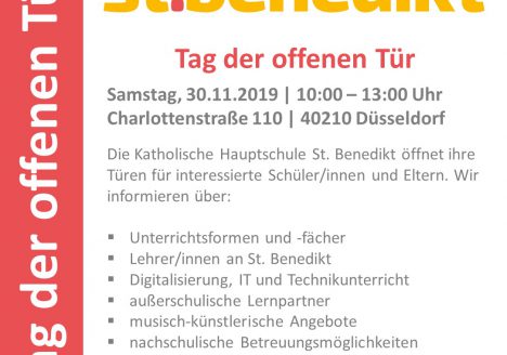 Traditionell öffnet die St. Benedikt Schule am ersten Adventswochenende ihre Türen für alle interessierten, zukünftigen und ehemaligen Schülerinnen und Schüler und deren Familien und Freunde. Wir freuen uns über das Erscheinen und…