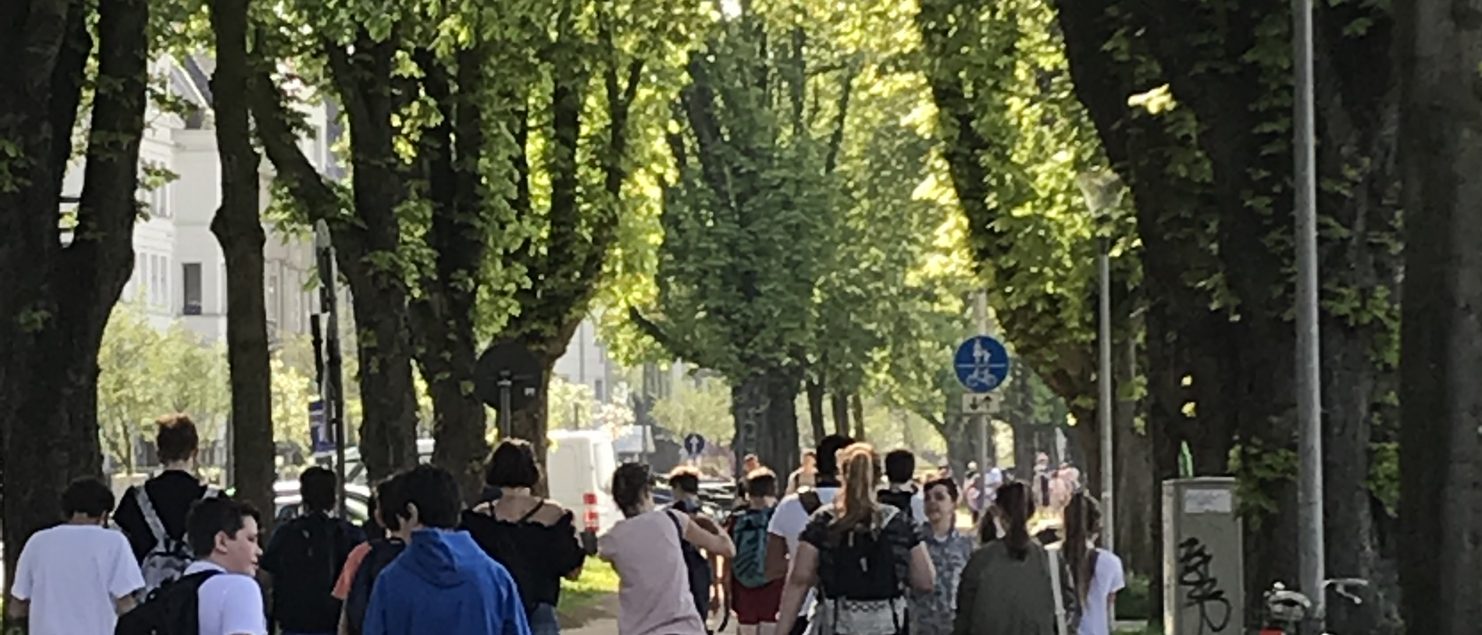 Der Weg führte durch den Hofgarten über die Oberkassler Brücke am Rhein entlang Richtung Theodor Heuss Brücke. Unter der Brücke konnten die Schülerinnen und Schüler sich an einem Verpflegungsstand mit Getränken, Früchten und Müsliriegeln ausruhen. Unterstützt wurde die Schule von dem wichtigem Kooperationspartner zitty-familie des Jugendamtes sowie engagierten Eltern. Danke!