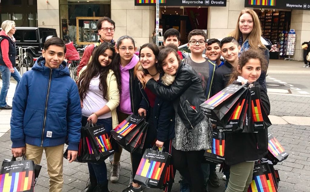 Am 27. April 2018 besuchten die Schülerinnen und Schüler der Internationalen Förderklasse die Mayersche Buchhandlung. Zum Welttag des Buches erhielten alle ein Buch. „Ich schenke dir eine Geschichte“ lautete das Motto 2018. Mit vollen Taschen ging es zurück zur Schule, denn es wurden auch Bücher für alle Fünfer- und Sechstklässler von St. Benedikt mitgebracht.