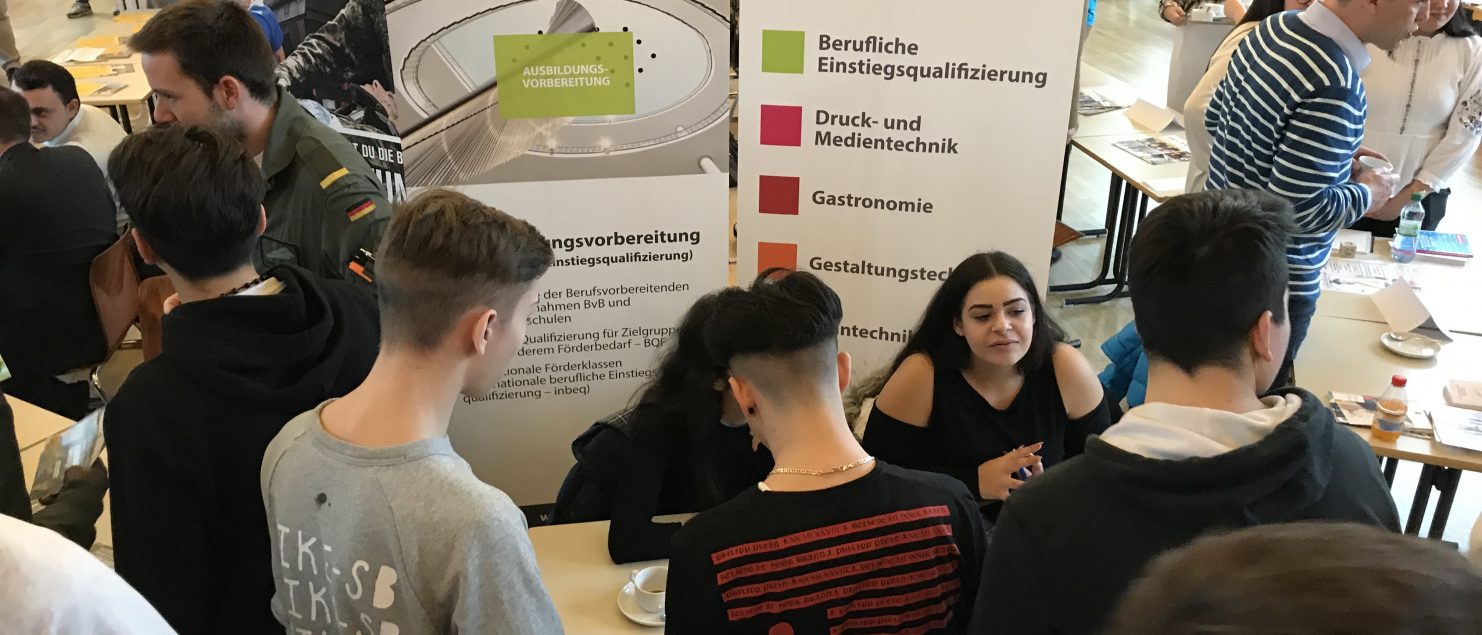 Im Rahmen des „Marktes der Möglichkeiten“, der bereits zum 19. Mal stattfand, hatten Schülerinnen und Schüler am Donnerstag die Möglichkeit, mit Kooperationspartnern aus verschiedenen Berufs- und Schulfeldern in Kontakt zu treten, die ihnen beim Übergang von Schule zu Beruf hilfreich und informativ und zur Seite stehen.