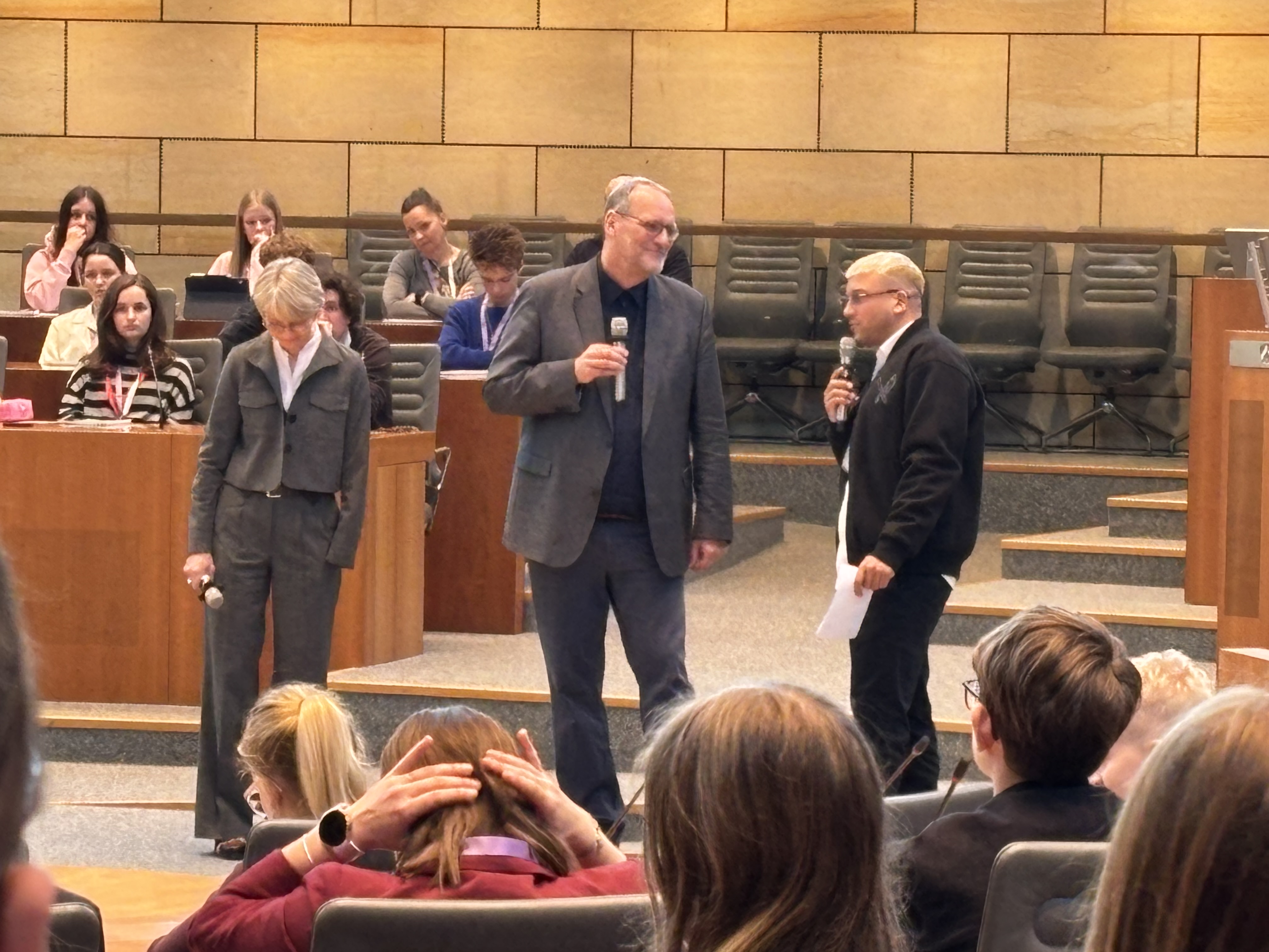 Am 9.2.2026 besuchten vier Schüler der Klasse 8C zusammen mit Frau Kux den Landtag in Düsseldorf. Der Besuch war Teil des Projekts YouVision. An diesem Projekt arbeiten wir bereits seit 2024. Dabei lernen Schüler, dass ihre Meinung wichtig ist und dass sie in der Schule mitbestimmen dürfen.