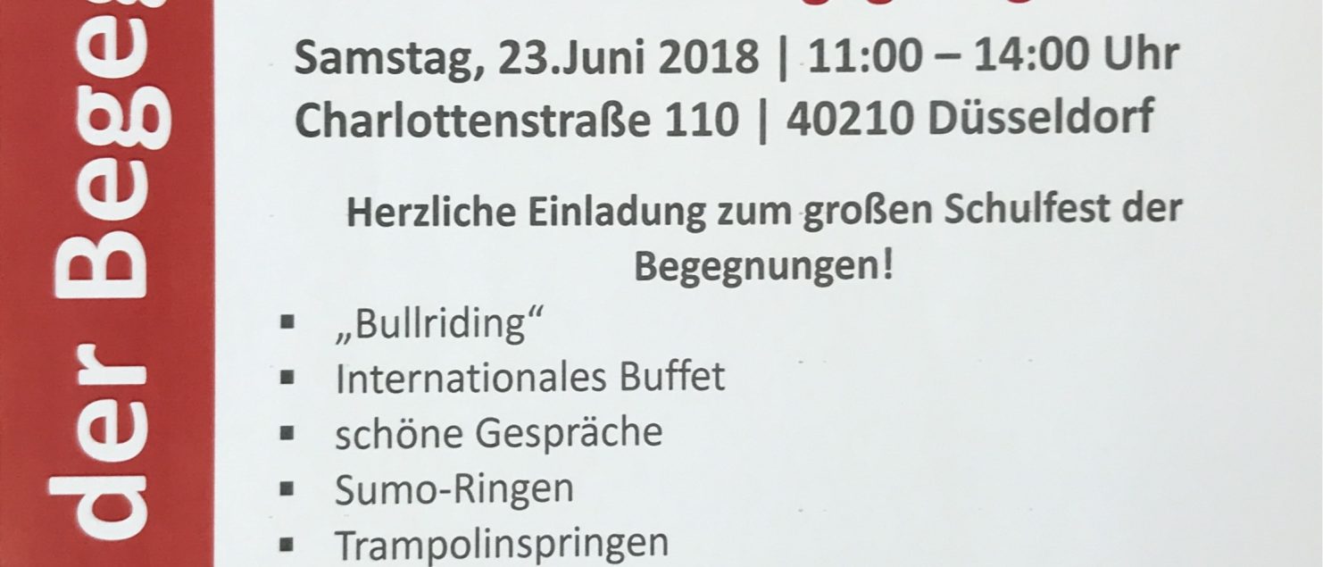 Schulfest der Begegnungen 26 April 2018 Neues aus der Schule Herzliche Einladungen zu unserem Schulfest der Begegnungen am 23. Juni 2018 von 11.00 bis 14.00 Uhr auf dem Schulhof der St. Benedikt Schule. Wir freuen uns auf Euer/Ihr Kommen! Newer Post „Ich schenke dir eine Geschichte“ – Internationale Klasse beim Welttag des Buches Older Post Charity Walk